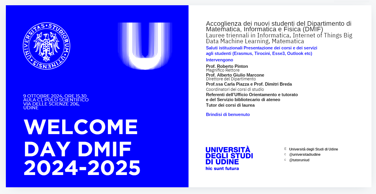Accoglienza dei nuovi studenti del Dipartimento di Matematica, Informatica e Fisica (DMIF)